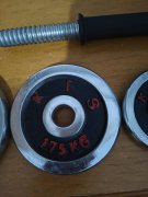 出售實(shí)心純鐵啞鈴一對(duì)圖片里啞鈴片每種4片總重44斤啞鈴桿2個(gè)固定螺絲5個(gè)價(jià)格50元